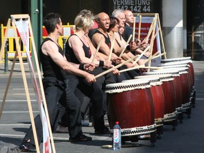 Immer wieder standen Trommler, DJ's oder Live Bands am Straßenrand und sorgten für Stimmung.