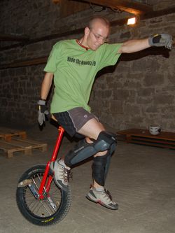 Ich hatte für mich leichte Bedenken, weil ich ohne Bremsen fuhr. Außerdem zähle ich mich eher zu den mittelmäßigen Einradfahrern. Aber: "Wer nicht wagt gewinnt nicht" machte ich mir Mut.