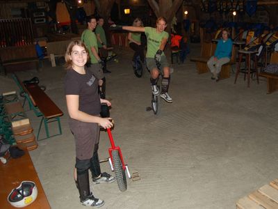 Wir vertrieben uns die Zeit bis dahin mit (na, was wohl?) Einradeln und Jonglieren (die es konnten).